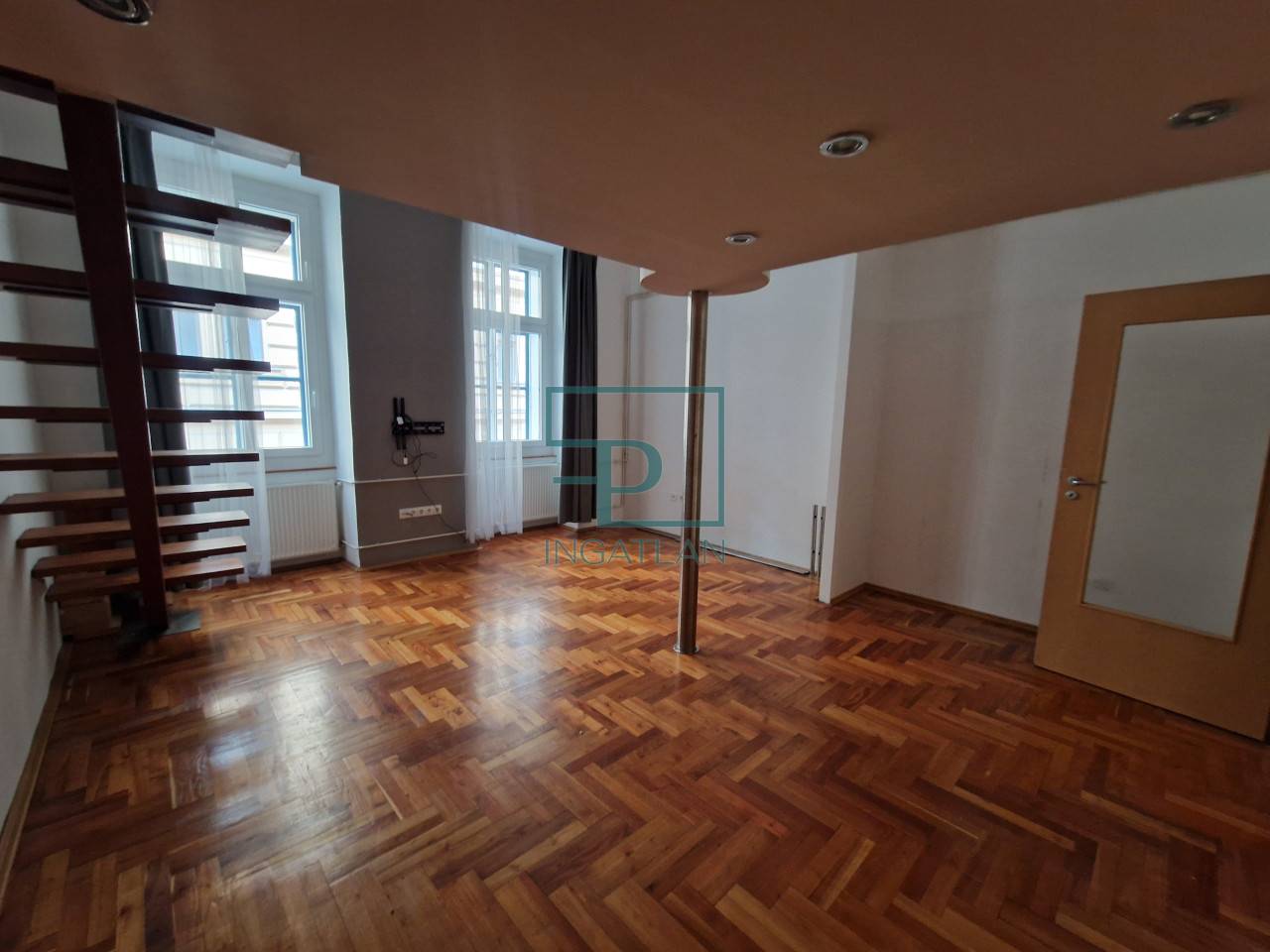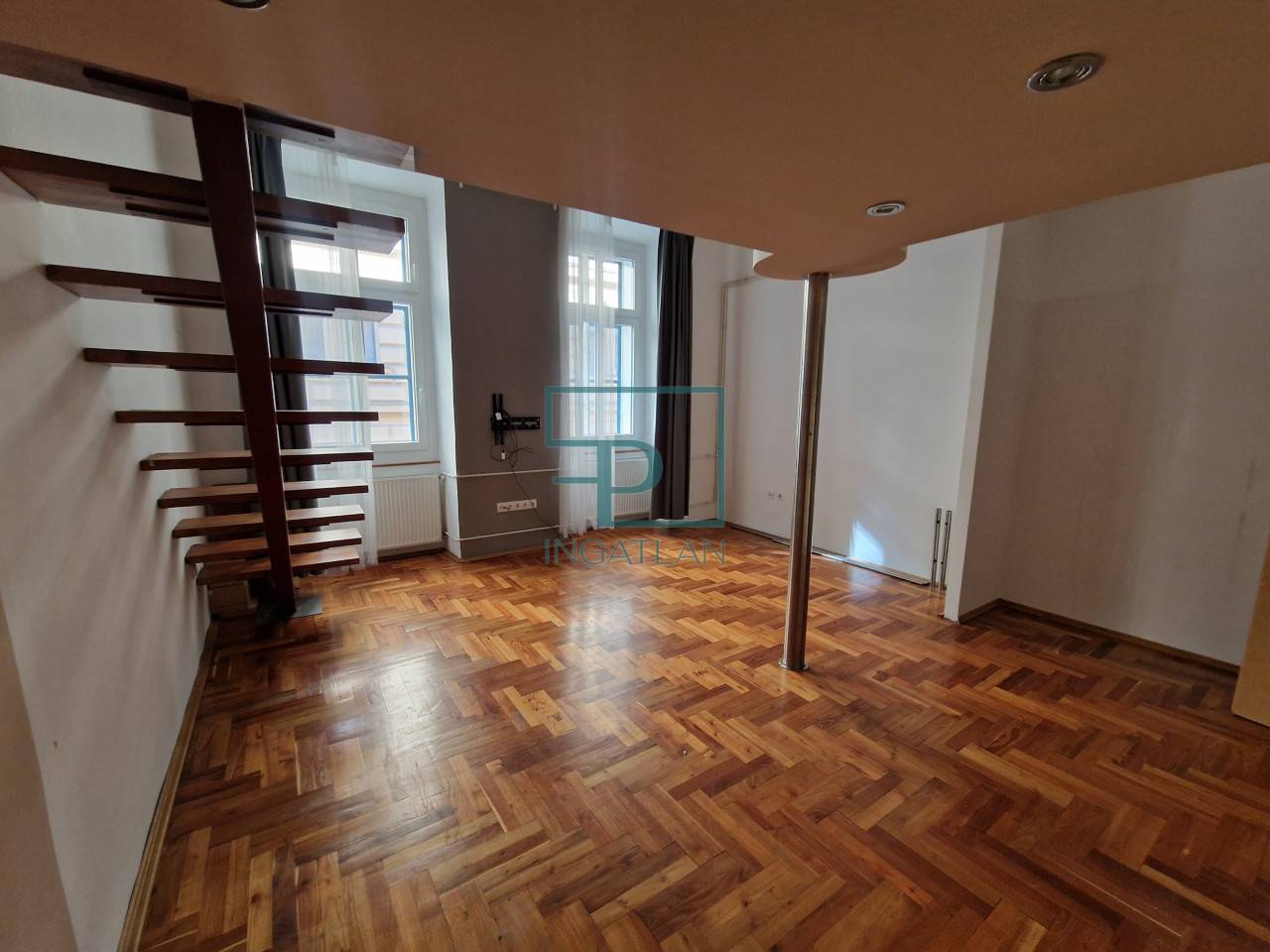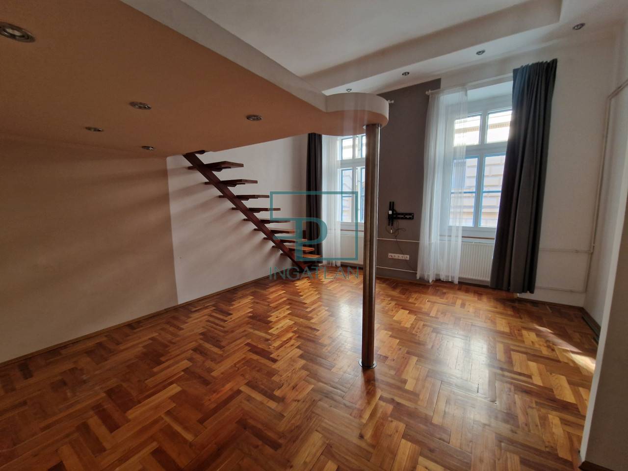 Eladó Budapesten a VI. kerületben a Paulay Ede utcában, ez az 53 nm alapterületű, I. emeleti, egy háló + nappalival, külön konyharésszel (jelenleg nincs beépítve), kádas fürdőszobával rendelkező lakás.